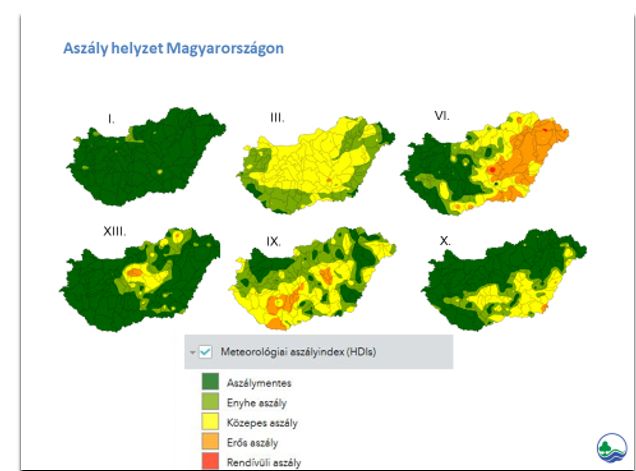 A tavalyi évre jellemző rendkívüli aszály idén nem súlytotta országunkat. Működési területünket az év nagy részében enyhe aszály jellemezte, nyáron erős aszály, illetve pontszerűen rendkívüli aszály volt észlelhető.