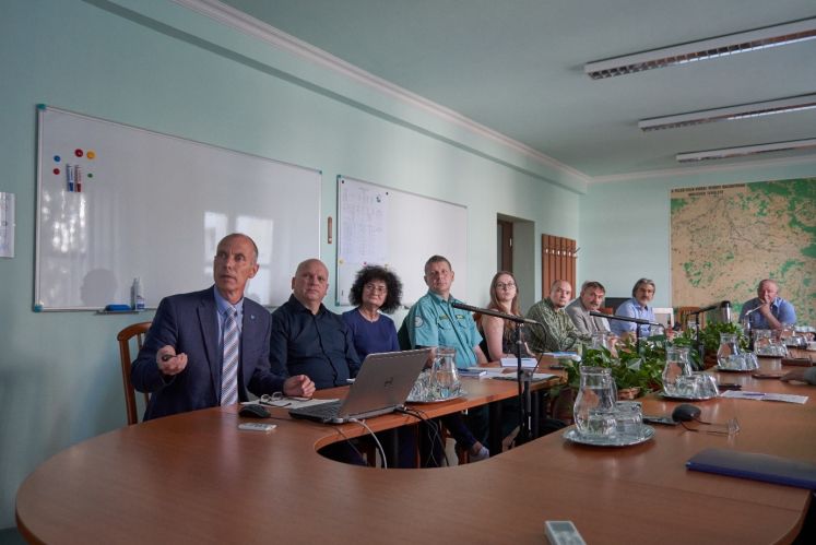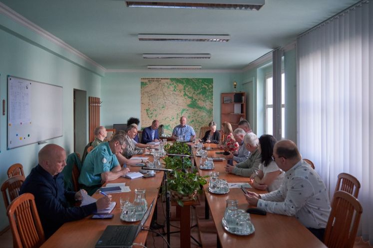 A képen a Felső-Tisza-vidéki Területi Vízgazdálkodási Tanács résztvevői láthatóak a tanácsteremben munka közben.