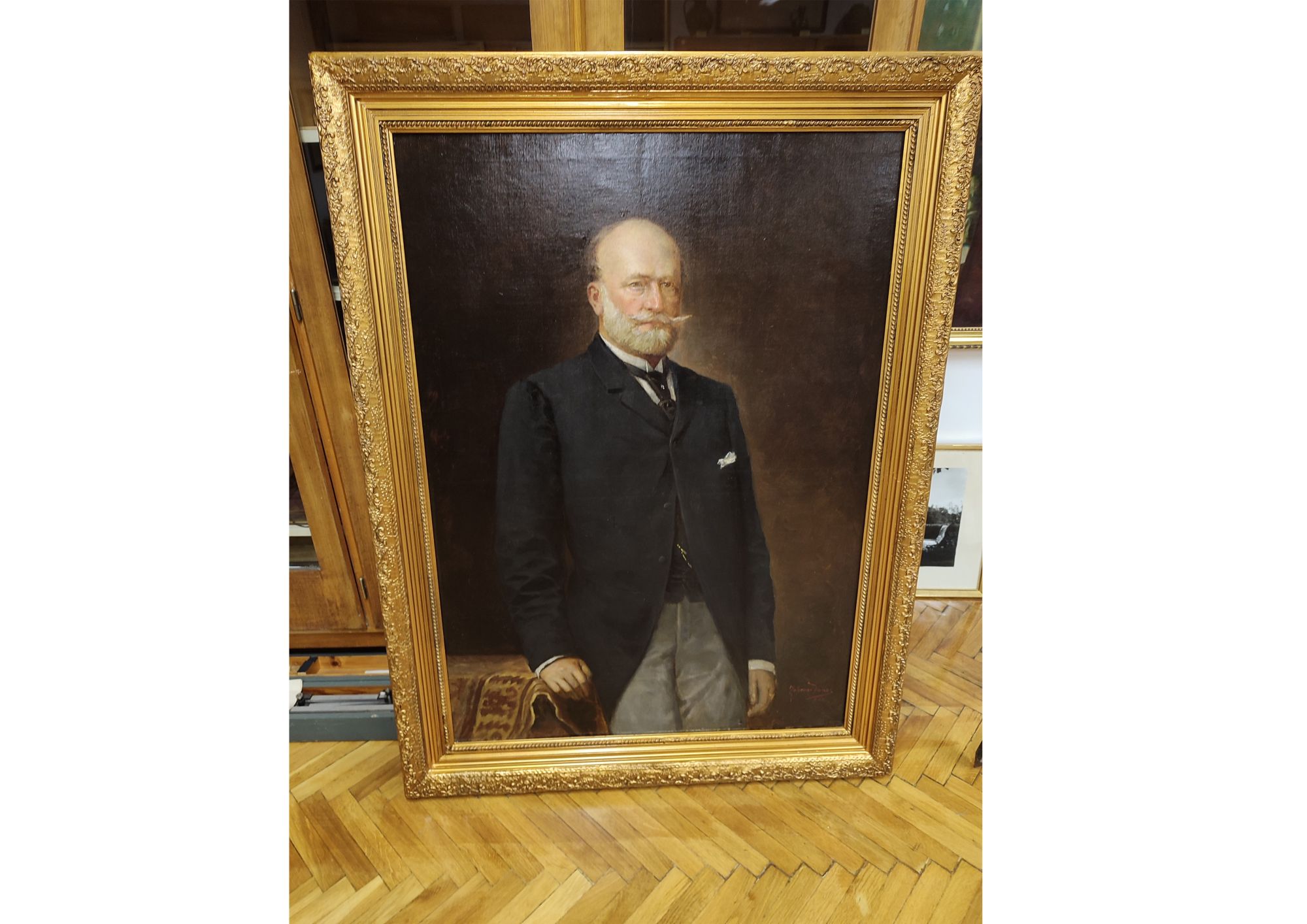 A nagyméretű (114x82 cm) díszes arany rámában lévő képet 1902-ben készítette Zahoray János, a kor neves portré festője. A festményt, többed magával 1945 után el kellett távolítani a falról, ekkor Mokos Sándor főmérnök átadta a családnak. Unokájának özvegye, Bozóky Szeszich Károlyné adományozta 1987-ben az igazgatóság kérésére Gyűjteményünknek, ahol méltó helyen került megőrzésre.