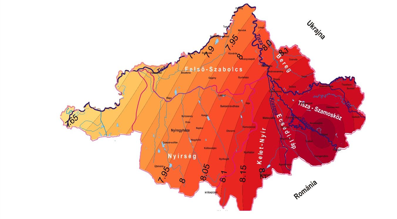A februári hónap extrém felmelegedést hozott működési területünkre is, a középhőmérséklet területi átlagban 7,9°C volt, amely 7,6°C-kal haladta meg a sokéves átlagot. Az alábbi izovonalas térkép a havi középhőmérséklet területi eloszlását mutatja.
