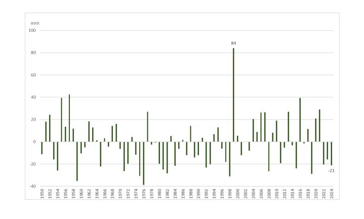 Az idei tél folyamán az utóbbi évekhez hasonlóan a sokéves átlagoknál magasabb középhőmérsékleteket regisztráltunk. 2023. decemberében az átlagos léghőmérséklet 2,7°C volt, amely 2,7°C-kal volt magasabb a sokéves átlagnál (0°C). 2024. januárjában 1°C-os középhőmérsékletet regisztráltunk területi átlagban, amely 2,9°C-kal volt magasabb sokéves átlagnál (-1,9°C).