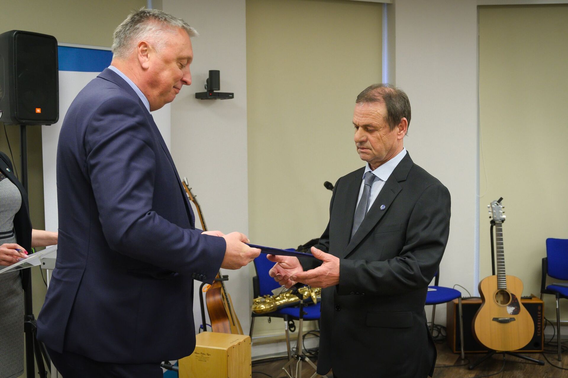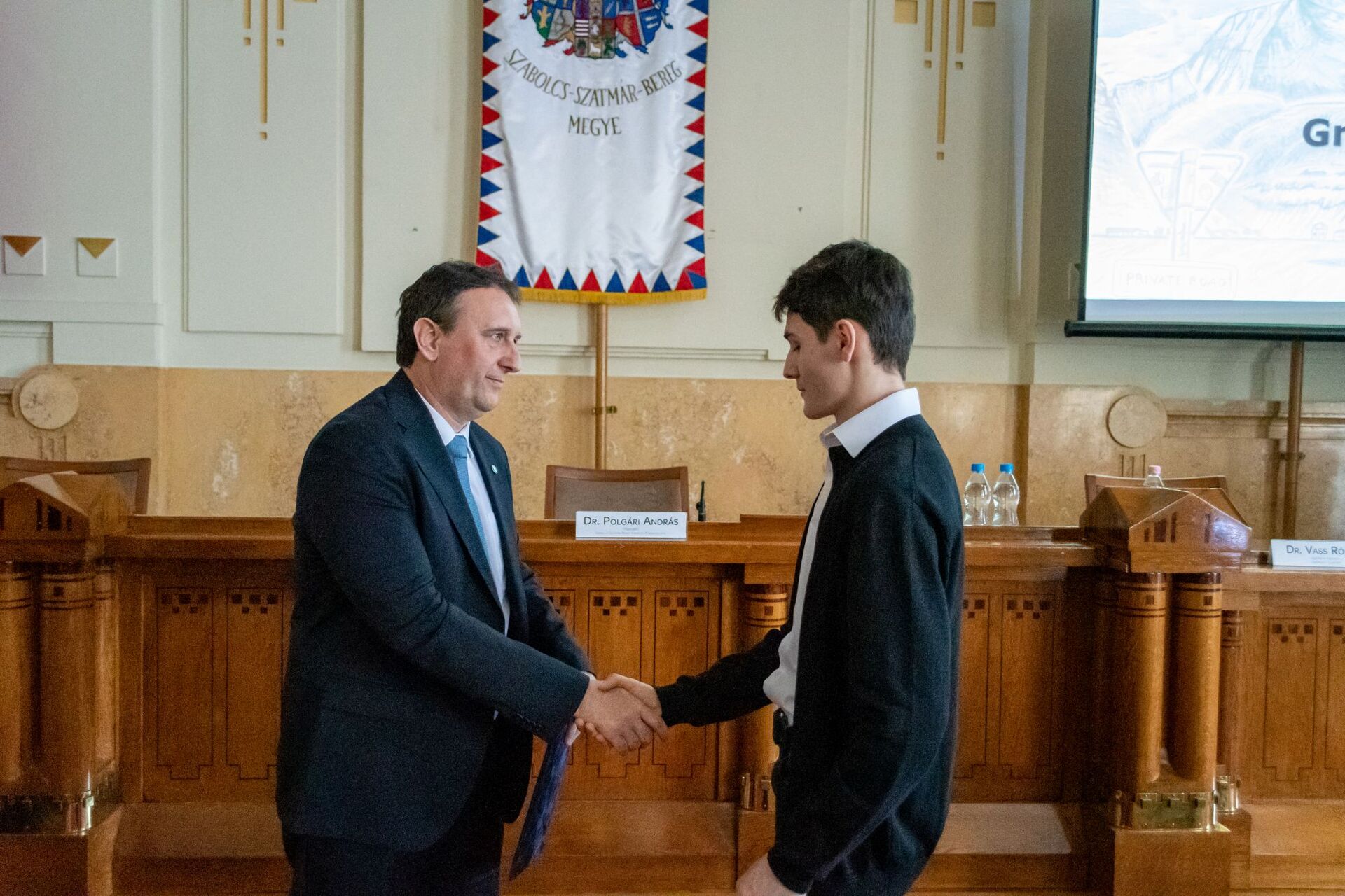 A képen Láng István főigazgató úr átadja az elismerő oklevelet Éles Viktornak az Informatikai Osztály informatikai és hírközlési referensének.