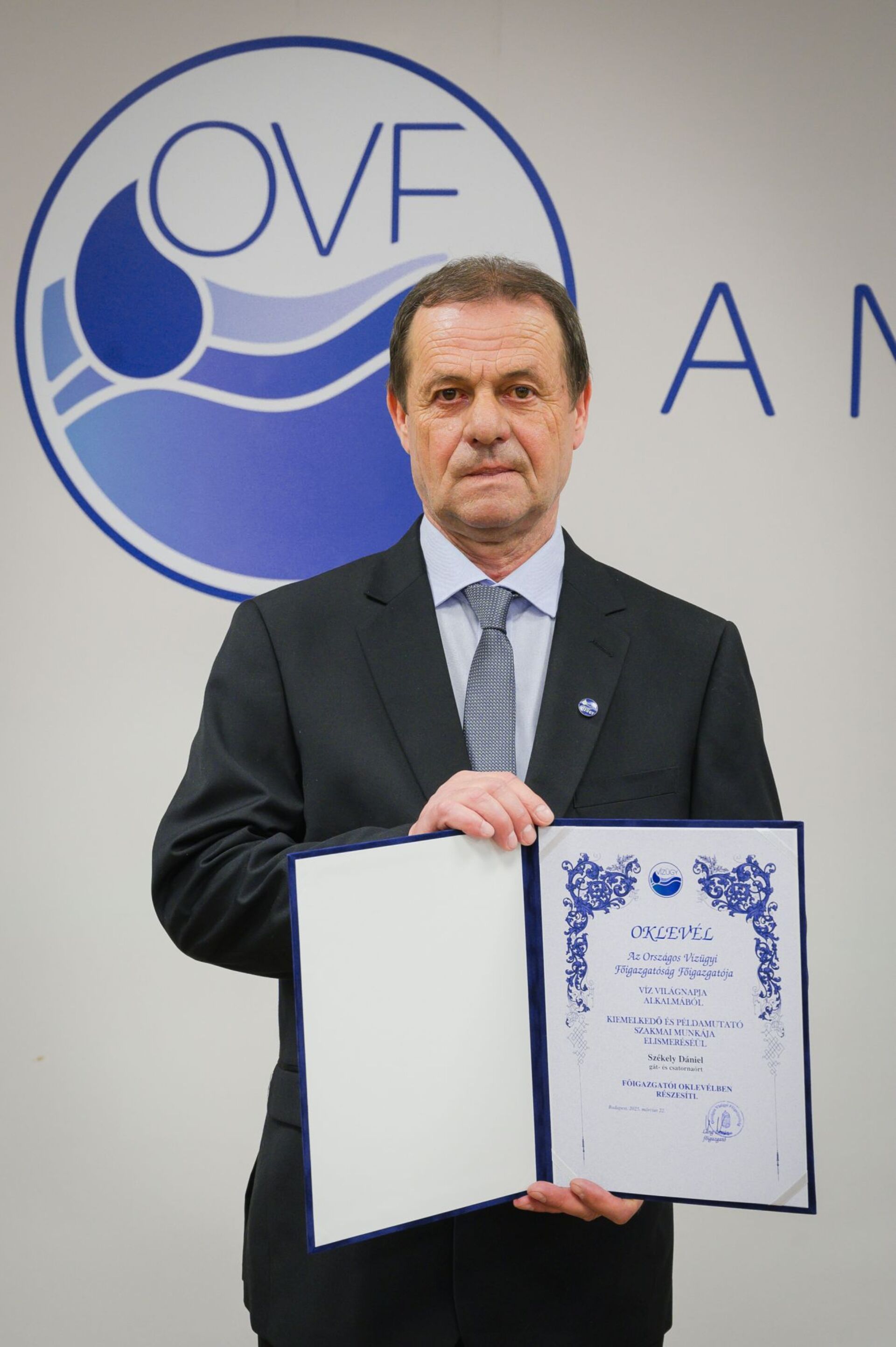 A képen az elismerő oklevél látható " Az Országos Vízügyi Főigazgatóság Főigazgatója nemzeti ünnepünk október 23.-a alkalmából kiemelkedő és példamutató szakmai munkája elismeréséül Éles Viktor informatikai és hírközlési referenst Főigazgatói Oklevélben részesíti.