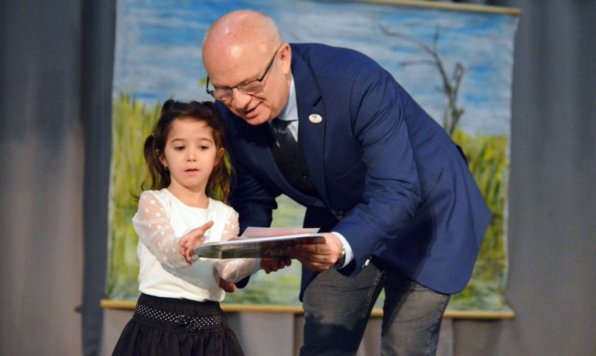 A képen Láng István főigazgató kézfogással gratulál Fábián Ferencnek a Szatmári Szakaszmérnökség gát és csatornaőrének.