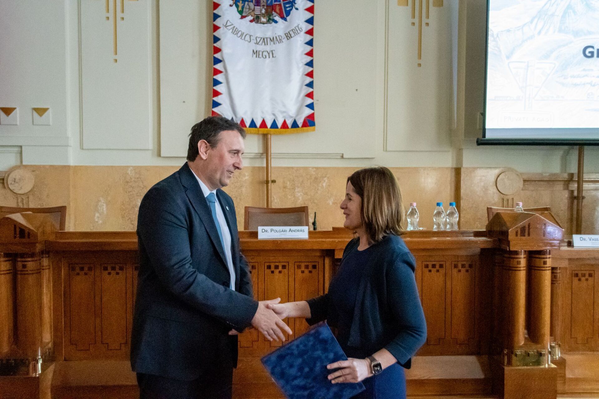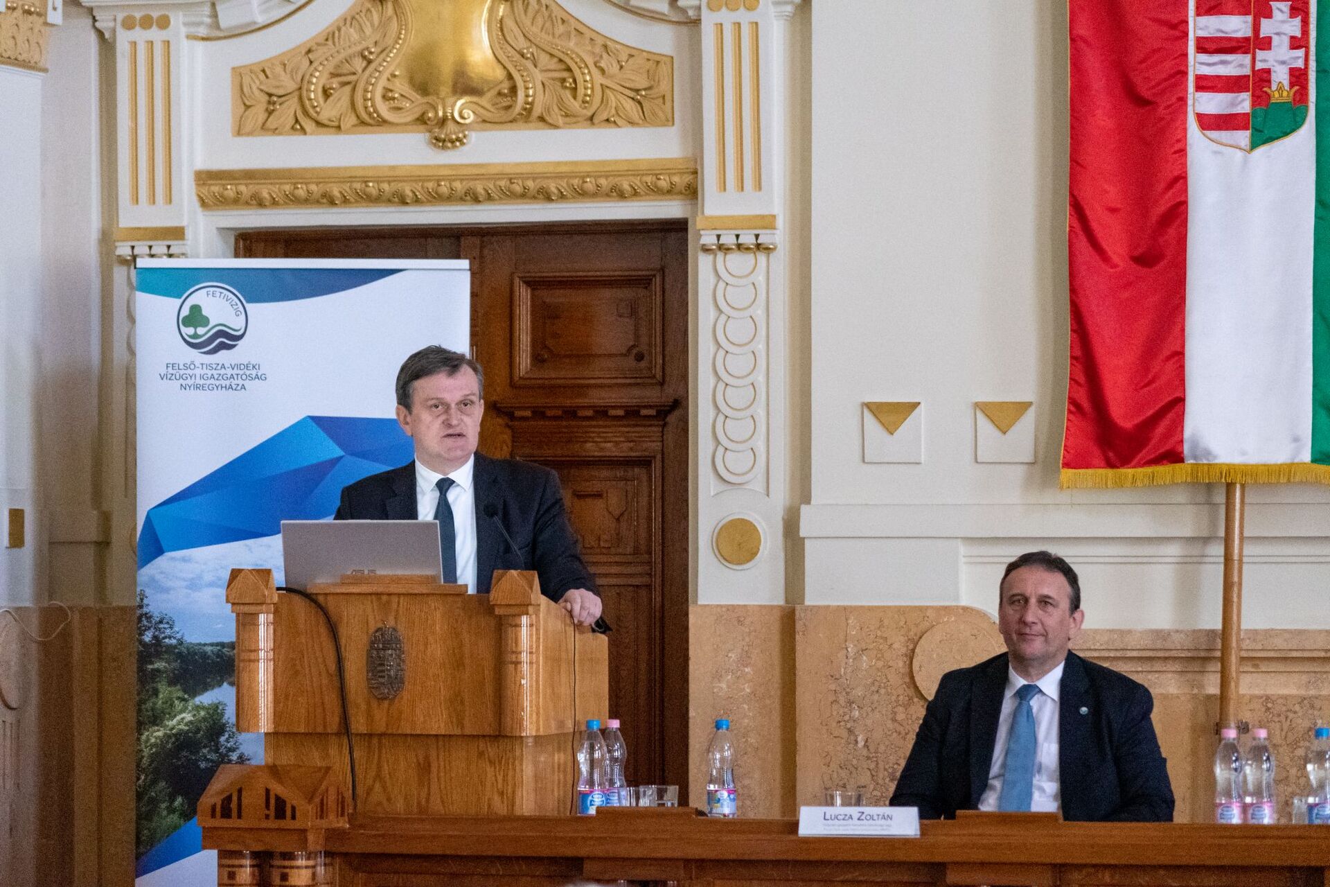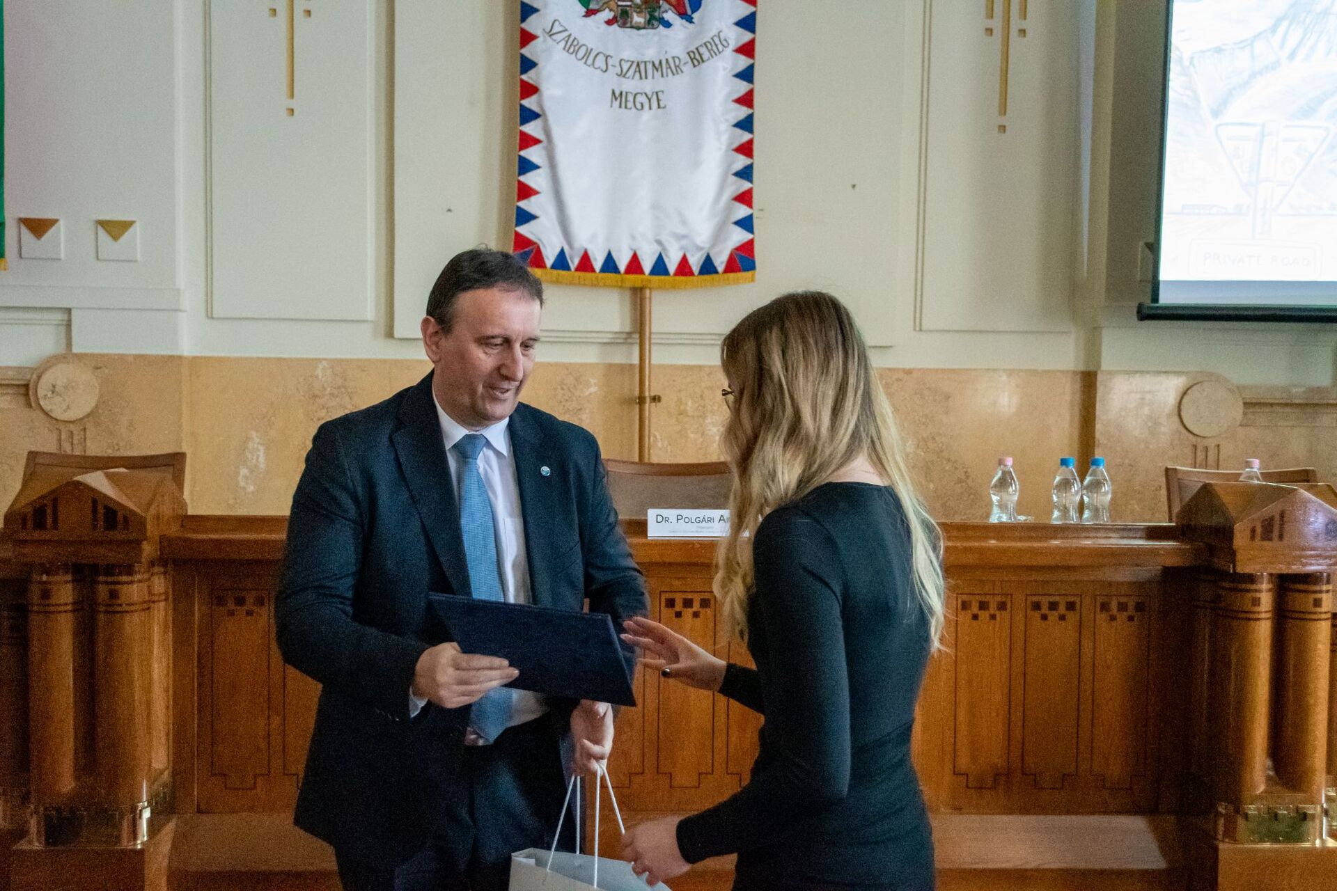 A képen Láng István főigazgató úr átadja az elismerő oklevelet Fábián Ferencnek a Szatmári Szakaszmérnökség gát és csatornaőrének.