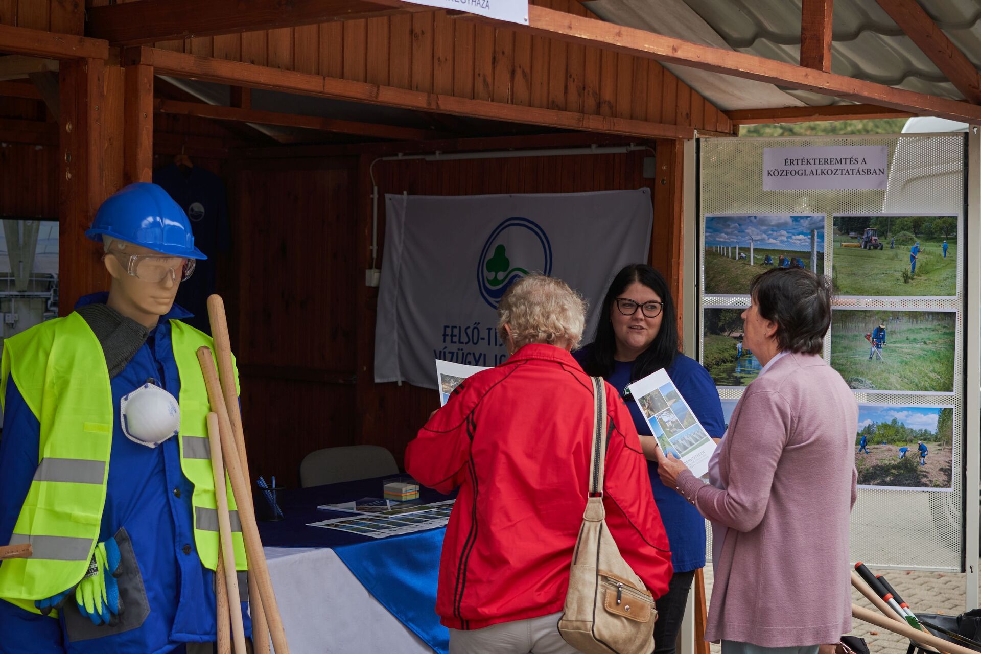 Vízügyes kolléga a tanműhely udvarán bemutató közben. A felvételi előtt álló hallgatók körében.