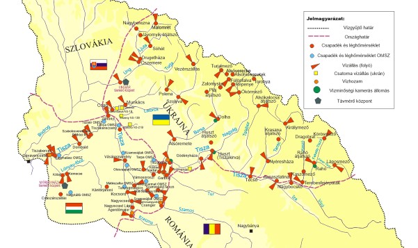 A nyíregyházi és az ungvári központot nagy sávszélességű mikrohullámú adatátviteli csatorna köti össze és az adatok kölcsönös továbbítására 5 percenkénti gyakorisággal kerül sor. Kárpátalja területén kiépített vízrajzi távmérő rendszer 11 egységből tevődik össze: Ungvári központ; 8 automata átjátszó állomás: Ungvár (Uzsgorod), Huszt-Rokoszovó, Jávornyik, Plaj, Munkács (Mukacsevo), Alsókalocsa (Kolocsava), Kraszna, Rahó (Rahiv); valamint két vízrajzi állomás: Técső és Huszt.